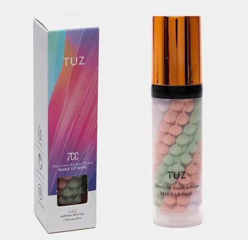 پرایمر رنگین کمانی توز tuz با داشتن هر ۳ رنگ، یک محصول تمام و کمال است. پرایمر آرایش را بی نقص میسازد و پوست را مخملی میکند.
